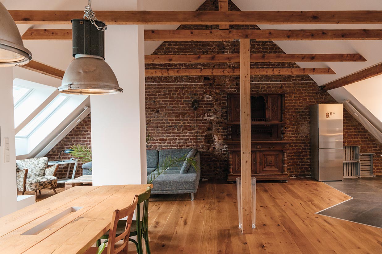 „Solche Böden bringen urbanes Flair in den Raum und sind gleichzeitig pflegeleicht und langlebig“, sagt Holzstudio Desch in Wächtersbach/Aufenau.